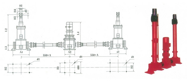 注:表中L1和L2項中的S為所需要行程mm,A3項中的A為推桿之間中心距的增加值,用戶在訂貨時確定。如以上規格不能滿足用戶需要本廠可為用戶特殊設計。