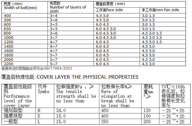 聚酯輸送帶是由多層聚酯帆布和彈性好、強(qiáng)力高、耐磨性優(yōu)異的覆蓋膠組成。用于輸送中小塊狀,粉狀,粒狀等物料。適用于中長(zhǎng)距離,較高載重和高速條件下輸送物料。